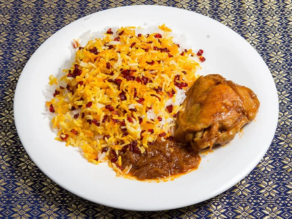6. Zereshk Polo ba Morgh (Barberry Rice with Saffron Chicken)